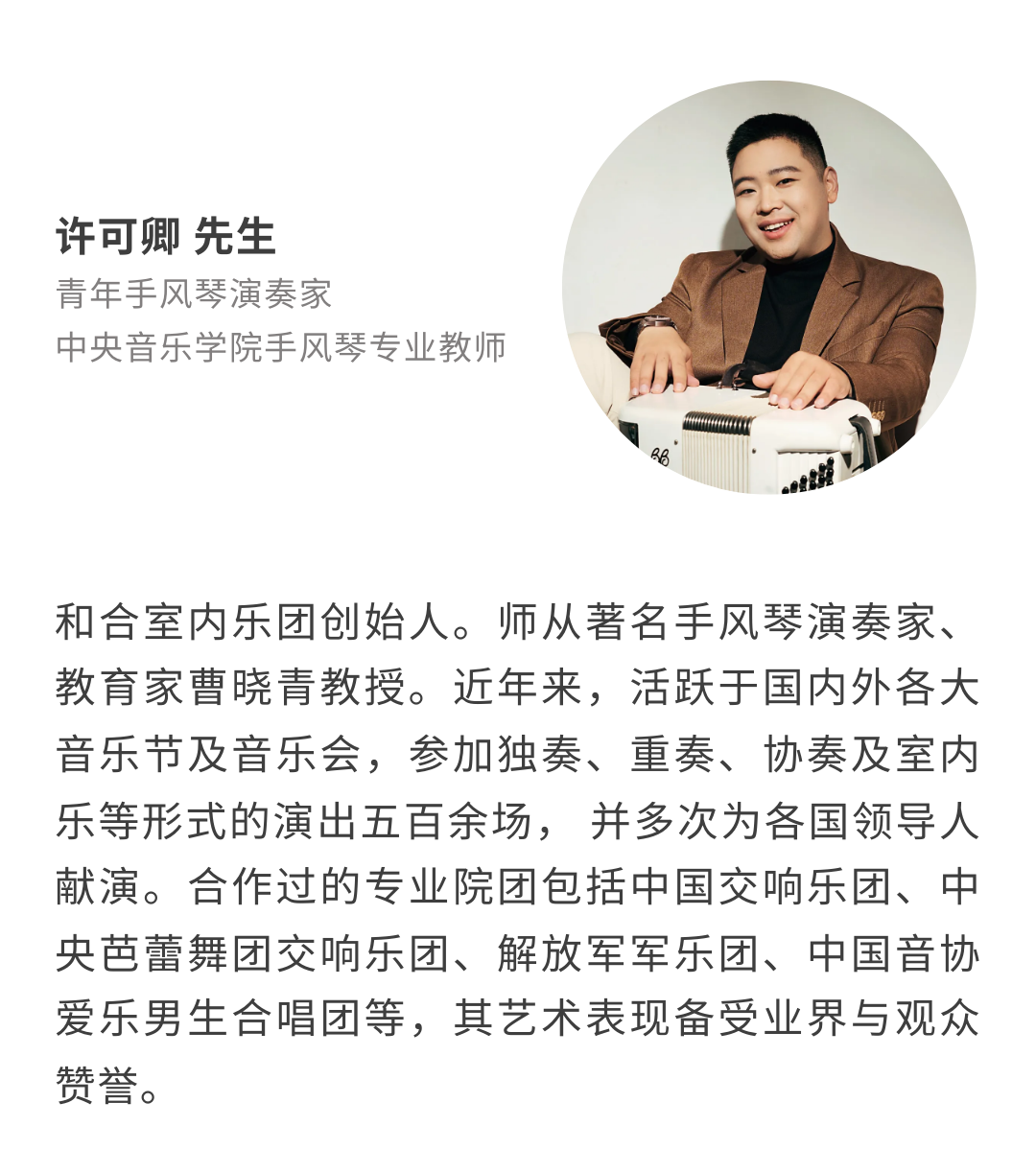 当前位置:首页 > Music China 上海乐器展 > 同期活动 > 活动日程 > 议程 > 教育大师班 > 琴键上的探戈——许可卿&和合室内乐团音乐分享会