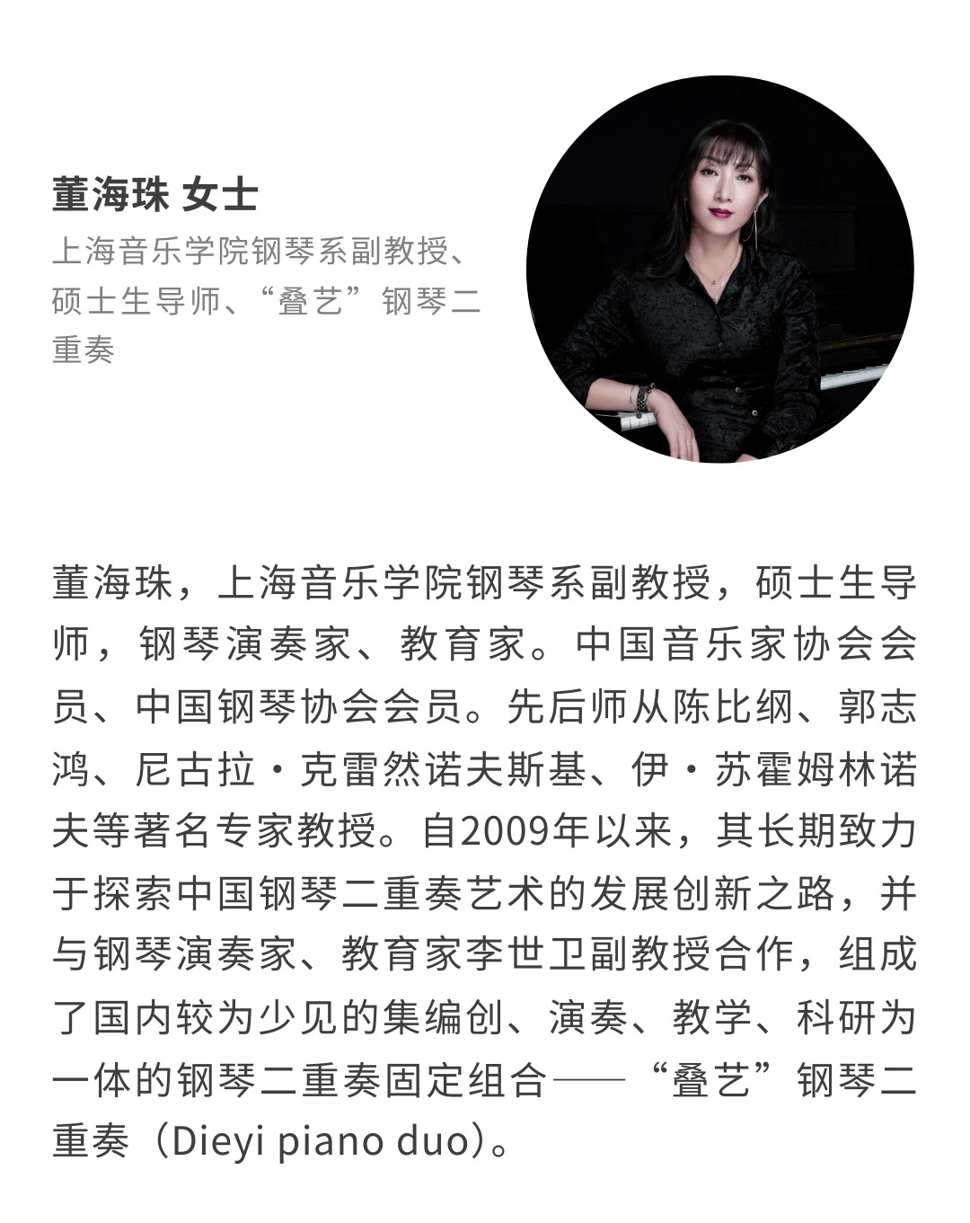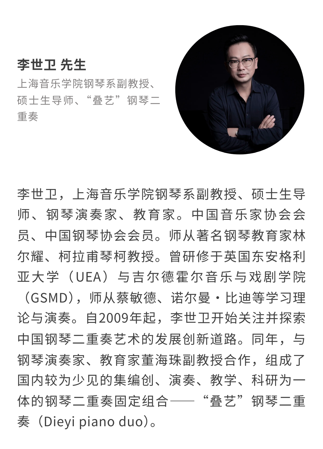 当前位置:首页 > Music China 上海乐器展 > 同期活动 > 活动日程 > 议程 > 人音大讲堂 > 钢琴上的对话:钢琴二重奏新书推介