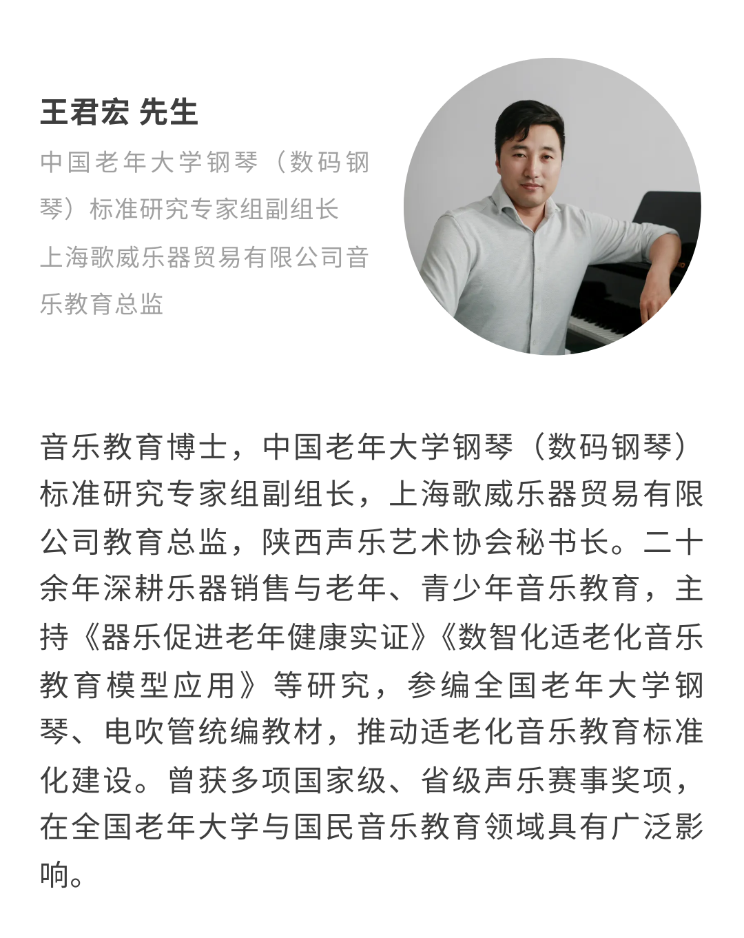 当前位置:首页 > Music China 上海乐器展 > 同期活动 > 活动日程 > 议程 > 音乐分享课 > 让教学更有价值:全国老年大学钢琴(数码钢琴)与电吹管岗位能力认证路径解析